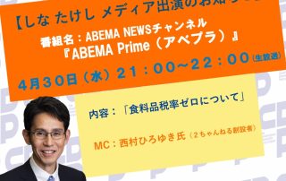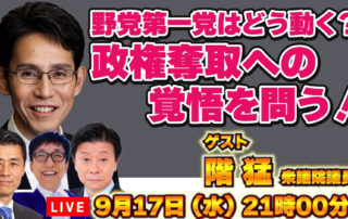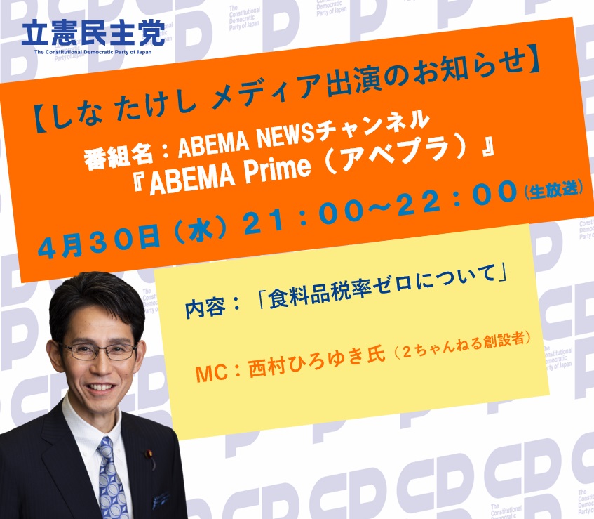 階 猛 が、 インターネットTV ABEMA の「ABEMA Prime(アベプラ)」に生出演します。 番組名 : 「AB [...]