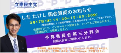 階猛が、2月17日(木)の 衆議院 予算委員会 第三分科会で