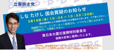 階猛が、3月16日(水)の 衆議院 東日本大震災復興特別委員会で