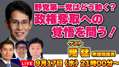 階 猛(しな たけし) が、 YouTubeチャンネルに生出演します。